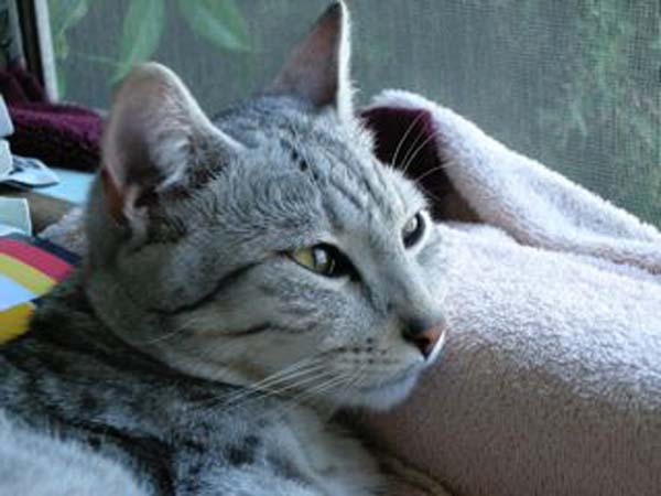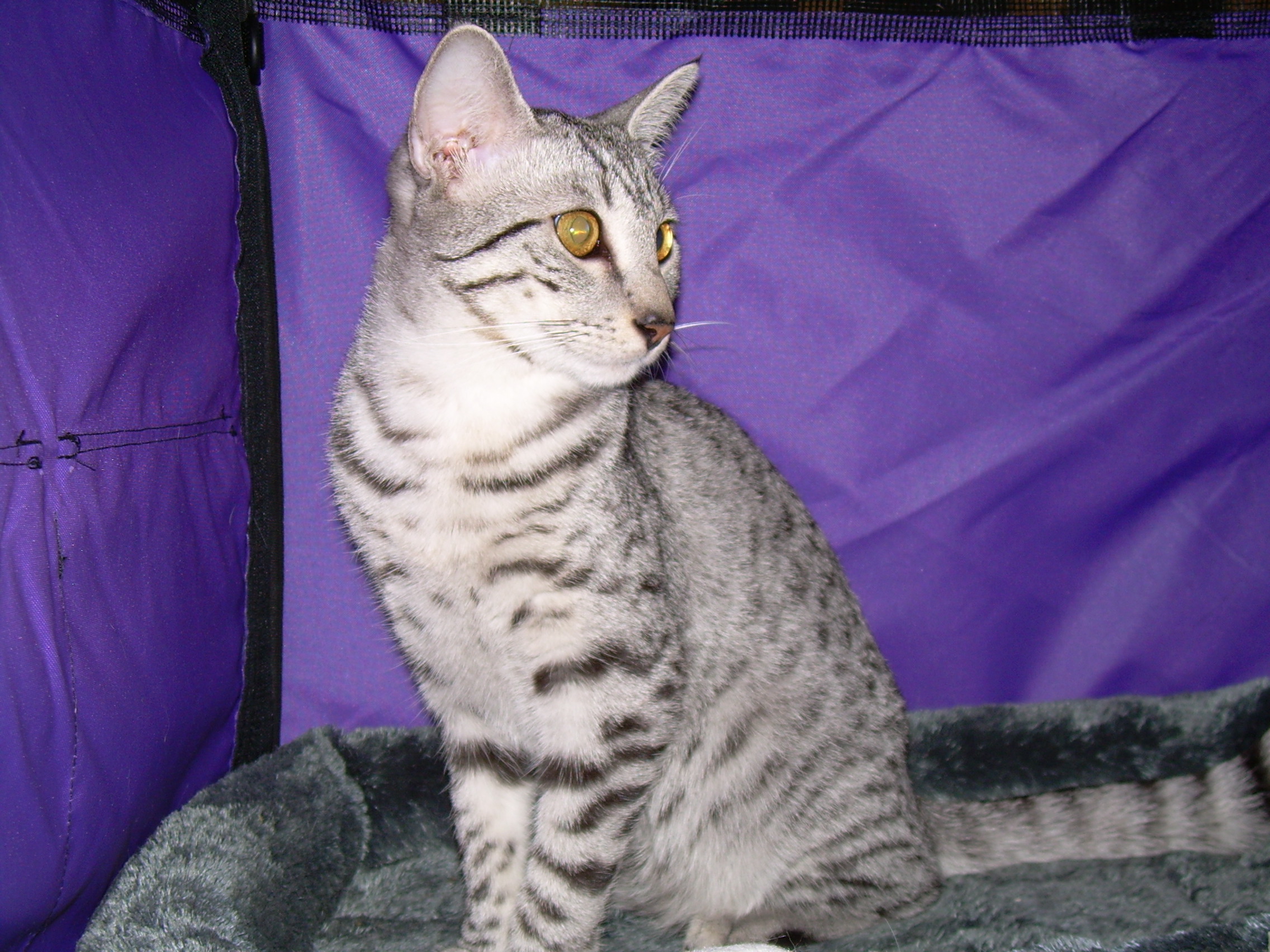 "Imp", (Champion Dragonway Akasha), is owned and shown by Kathy Cordes, (KCCatz).